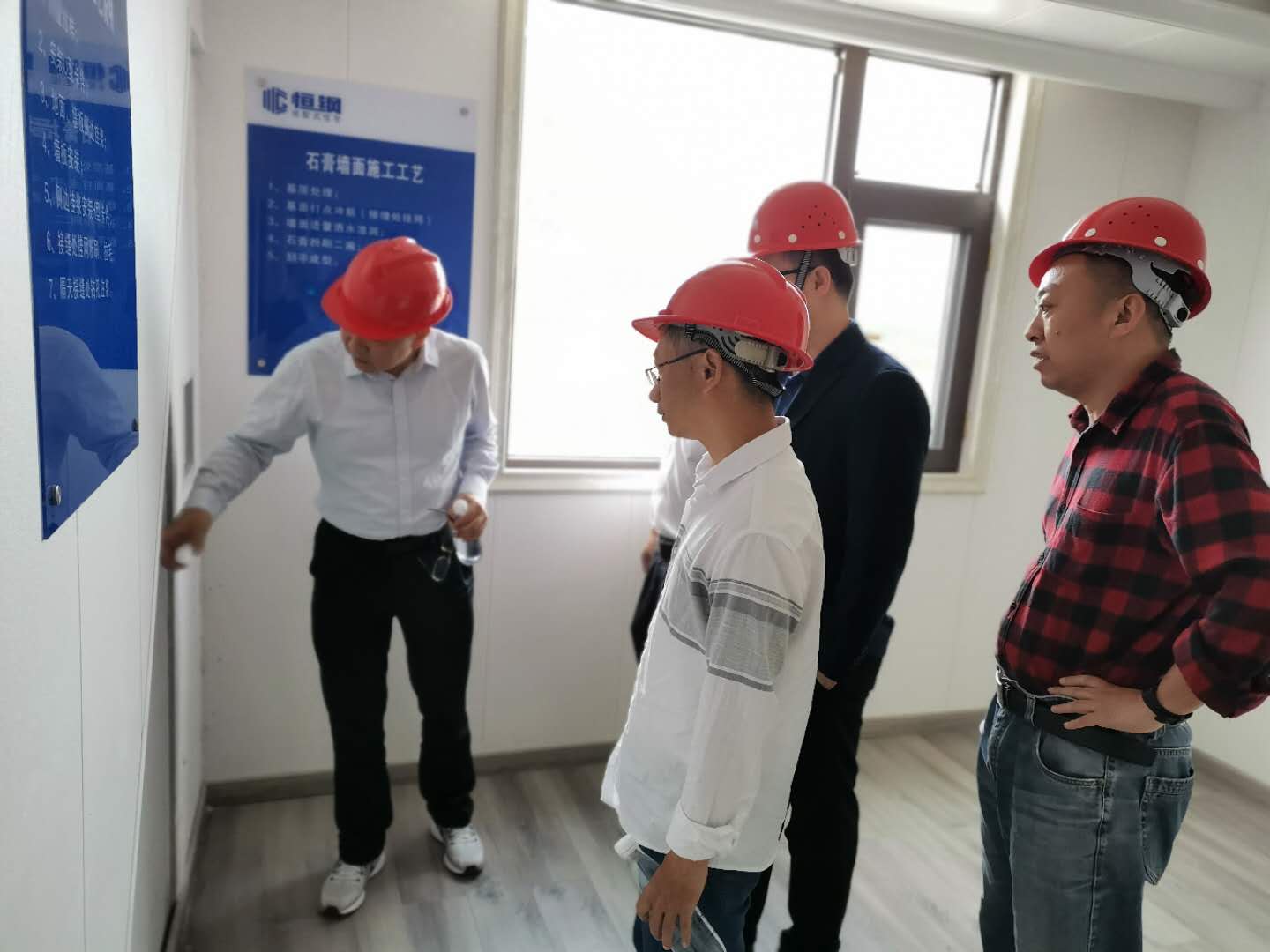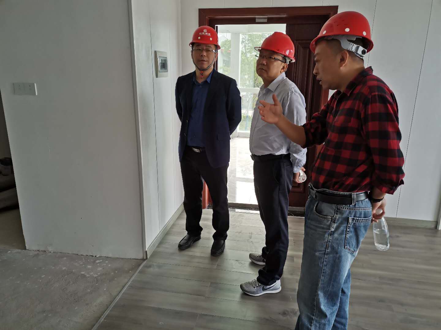 下圖為上饒市住房和城鄉(xiāng)建設(shè)局副局長詹遠耀一行參觀鋼結(jié)構(gòu)樣板房